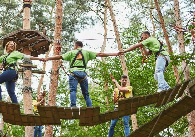 Gather your colleagues and take it to the trees for an unforgettable team-building adventure that’s designed to build group skills.